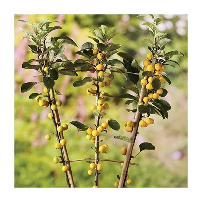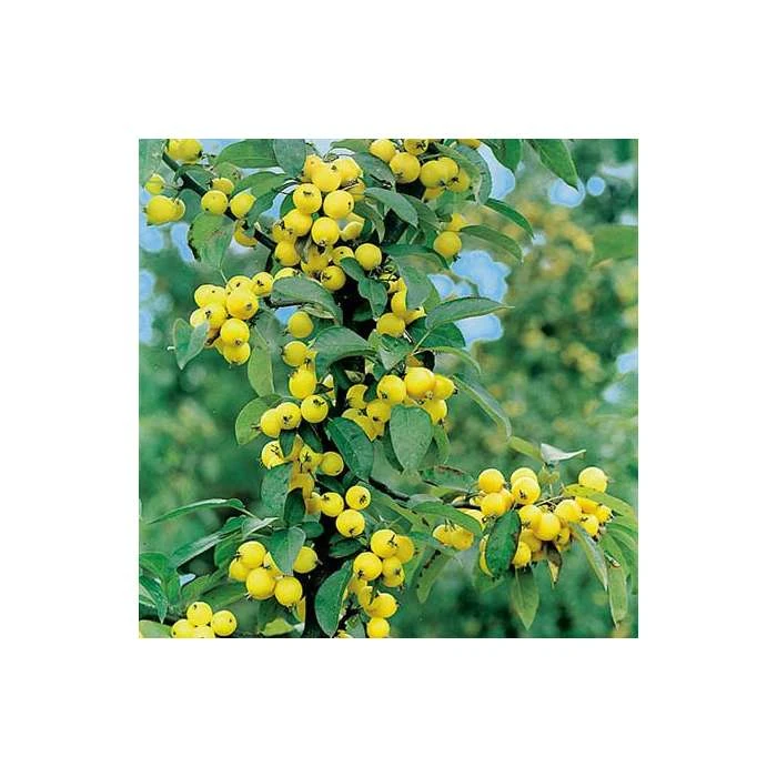 Malus ‘Golden Hornet’ is a heavy-fruiting tree which produces clusters of distinctive golden yellow fruits, which hang on throughout autumn and into winter. The tree also produces a beautiful pink and white bloom during Spring making it a fantastic ornamental tree.