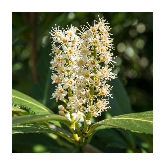 Prunus laurocerasus (but most commonly called ‘Cherry Laurel’), is a beautiful hedging specimen that is densely packed with emerald green, ovate-shaped leaves. Although traditionally grown for its evergreen foliage, come spring time intricate white blooms will adorn the plant. These flowers will be well appreciated by your garden’s pollinating friends, earning this plant the RHS ‘Perfect for Pollinators’ logo! Appearing in autumn, the dark red berries add further appeal to this variety, where they will eventually turn black. As such, this Cherry Laurel is a wonderful ornamental hedge for bringing interesting features to your garden that change with the seasons.