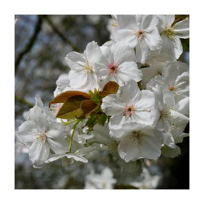 ‘Tai-haku’ boasts flowers twice the size of normal flowering cherry tree flowers, being pure white in colour in the spring. It perfectly complements its bronze-red leaves when young. In the spring, copper colour foliage emerges, which later turns to a lovely autumn light orange.